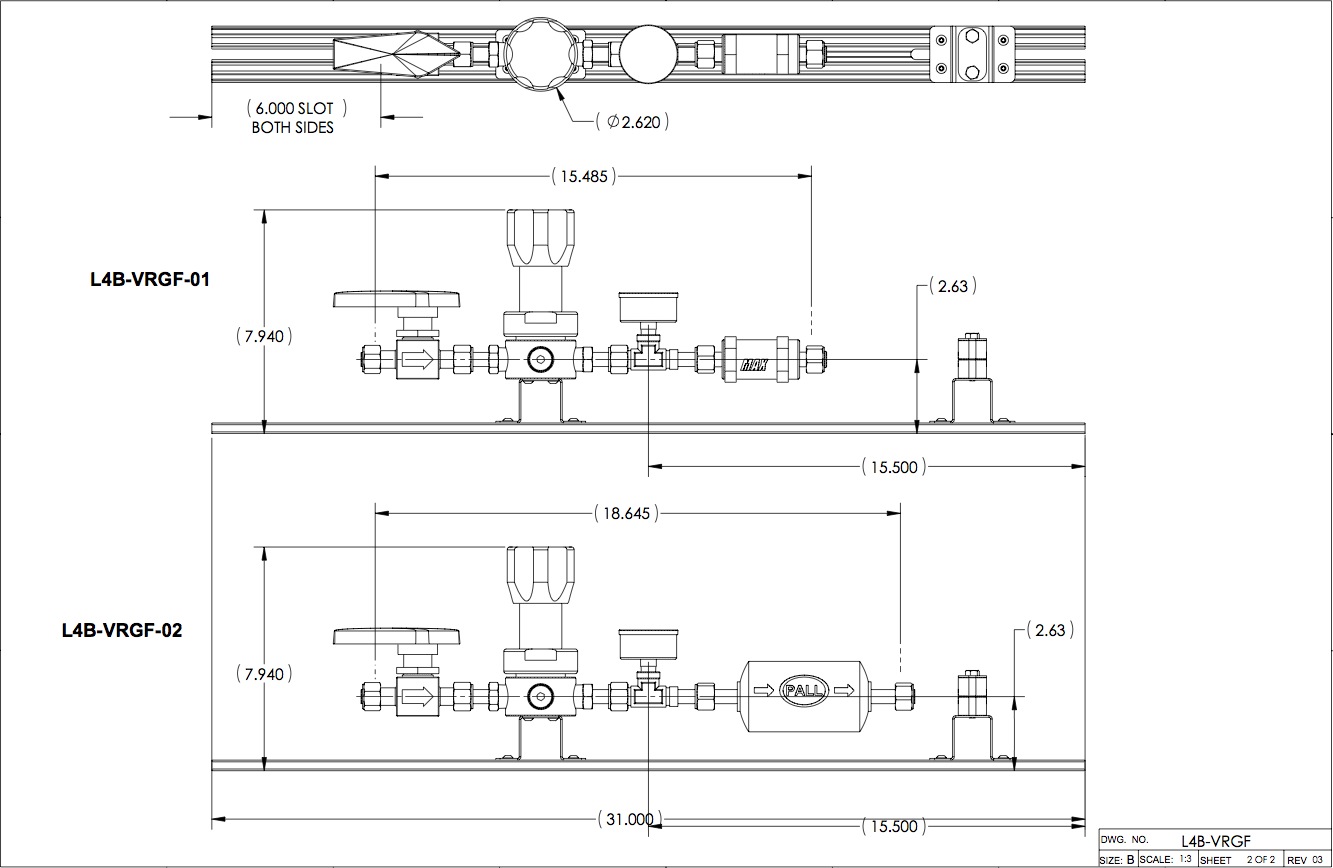 All Invatech Gas Sticks are shipped with back mount gauges. This takes up considerably less space than lower mount gauges mounted to the side of the regulator.